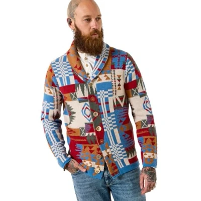 Joe Browns Men's Aztec Patchwork Shawl Neck Cardigan, Regular, Multi, UK L