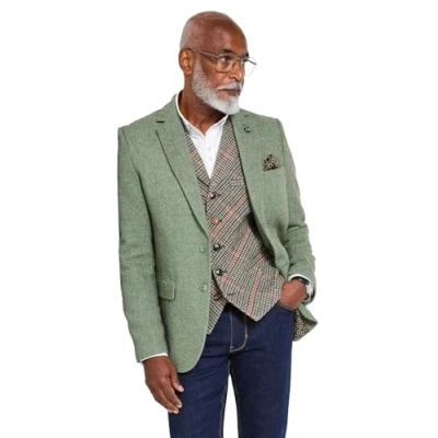 Joe Browns Men's Bold Contrast Lined Stylish Herringbone Blazer, Green, 38