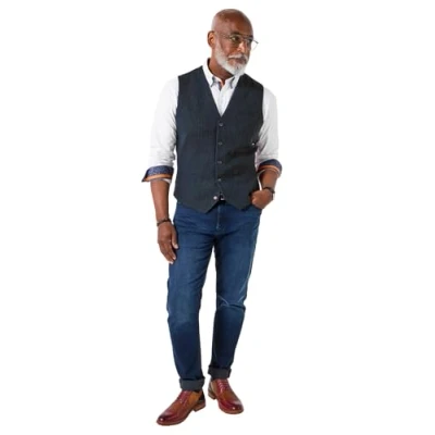 Joe Browns Men's Classic Look Herringbone Button Waistcoat, Regular, Navy, UK 40