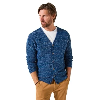 Joe Browns Men's Contrast Button Supersoft V Neck Cardigan Sweater, Blue, XL