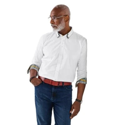 Joe Browns Men's Contrast Printed Trim Long Sleeves Shirt, White, S