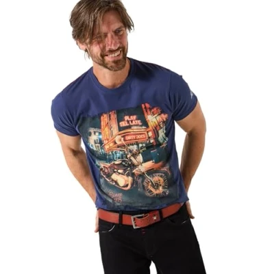 Joe Browns Men's Crew Neck Short Sleeve Biker Style Tee T Shirt, Blue, L