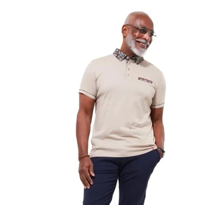 Joe Browns Men's Fashion Neutral Floral Collared Polo Shirt, Regular Fit, Beige, XXL