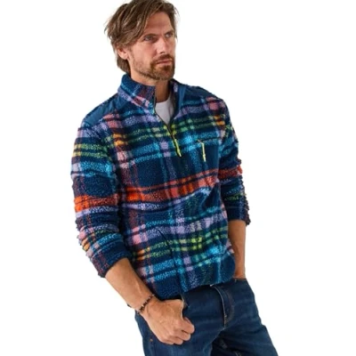Joe Browns Men's Fleece Check Funnel Neck top Henley Shirt, Navy, S