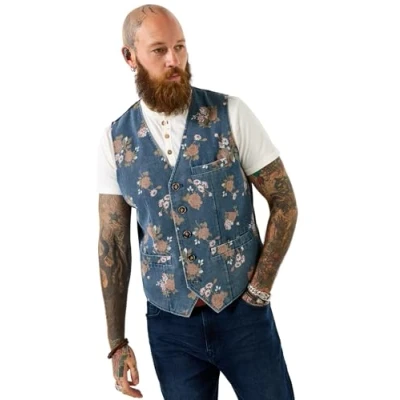 Joe Browns Men's Bold Floral Jacquard Waistcoat, Regular, Blue, UK 44