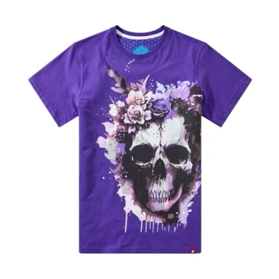 Purple tee Classic crew neck Short sleeves Floral skull graphic Printed yoke