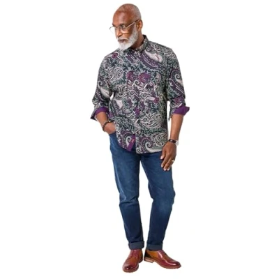 Joe Browns Men's Large Paisley Print Long Sleeve Shirt, Black, S