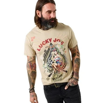 Joe Browns Men's Pin up Lucky Card Graphic Tee, Regular, Cream, UK L
