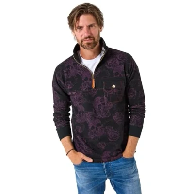 Joe Browns Men's Skull Print Funnel Neck Top Henley Shirt, Purple, XXL