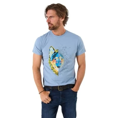 Joe Browns Men's Wolf Contrast Print Crew Neck Tee T Shirt, Blue, XL