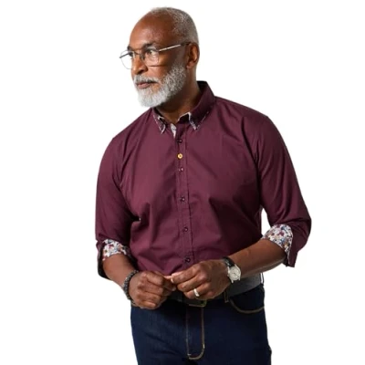 Joe Browns Men's Floral Trim Double Collar Long Sleeve Shirt, Merlot, L