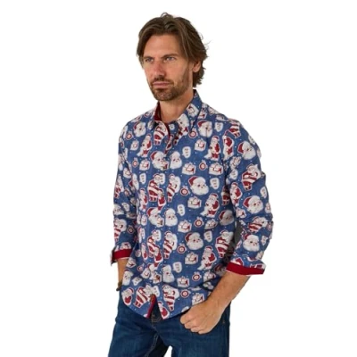 Joe Browns Mens Santa Novelty Printed Long Sleeve Shirt Regular Blue UK XXL