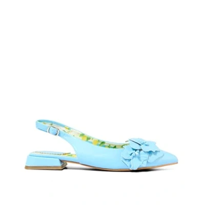 Bursting with colour and comfort, these pointed-toe slingbacks are a chic alternative to heels. Featuring elegant floral details, they're perfect for weddings, christenings, or casual lunches. Easy to dress up or down, they’ll quickly become your go-to flats this season. Blue slingback shoes , Elegant pointed toe , Comfortable flats design , Unique 3D flower detail , Stripe and lemon lining. Heel Height: 2.8cm