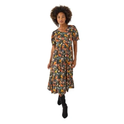 Joe Browns Women's Autumn Print Floral Vintage Dress, Regular, Green, UK 14