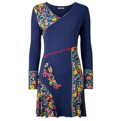 Joe Browns Women's Blanket Stitch Detail Floral Panelled Jersey Tunic Shirt, Navy, 16