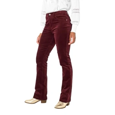 Bootcut trousers Made from stretchy moleskin fabric Mock front pockets, handy back patch pockets Available in berry, rust and peacock colours