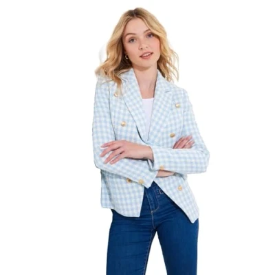 Joe Browns Women's Checked Co Ord Blazer Jacket, Regular Fit, Blue, UK 18