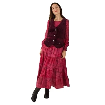 Joe Browns Women's Cord Waistcoat with Frill and Pockets Casual Blazer, Purple, 12