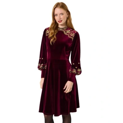 Joe Browns Women's Embroidered Stretchy Velvet Dress, Red, 6
