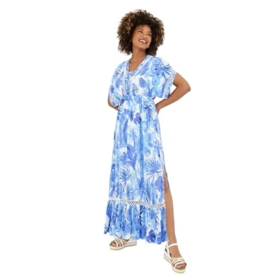 Joe Browns Women's Fashion Tropical Print Kimono Sleeve Boho Tassel Maxi Dress, Regular Fit, Blue, UK 18
