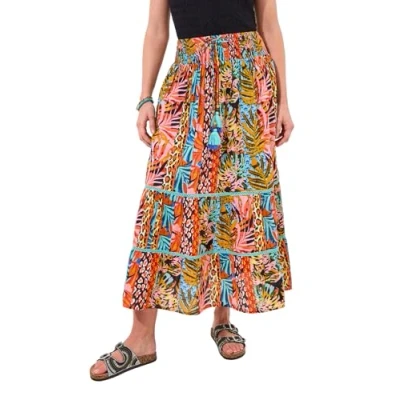 Joe Browns Women's Fashion Tropical Print Tiered Maxi Skirt, Regular Fit, Orange, UK 8