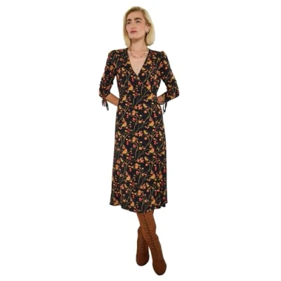 Joe Browns Women's Festive Robin Print Dress, Black, 14 UK (Petite)