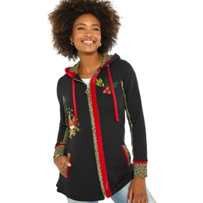 Joe Browns Women's Festive Robin Print Hoodie Hooded Sweatshirt, Black, 12