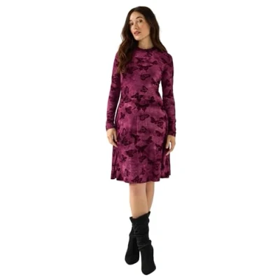 Joe Browns Women's Flocked Butterfly Jersey Mini Skater Dress, Regular, Plum, UK 16