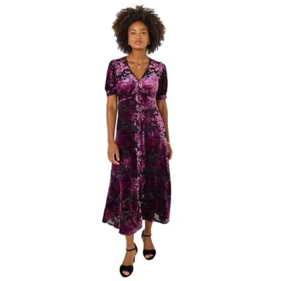 Joe Browns Women's Floral Devore Dress, Purple, 16