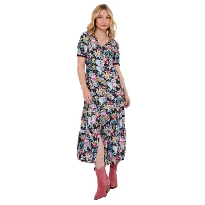 Joe Browns Women's Floral Lace Trim V Neck Maxi Dress, Black, 18
