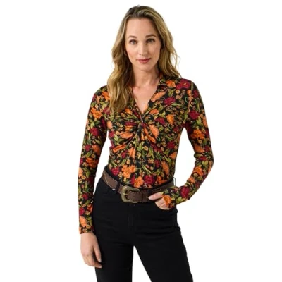 Joe Browns Women's Floral Twist Front Collared Jersey Top Blouse, Orange, 18