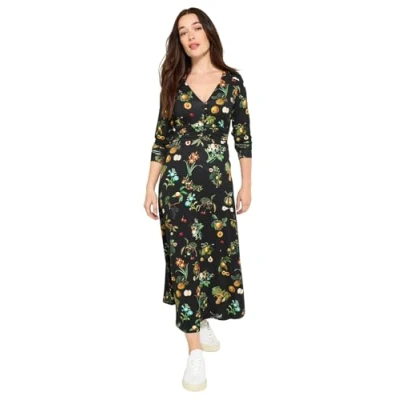 Joe Browns Women's Fruit Print Long Sleeve Midi Jersey Dress, Black, 18