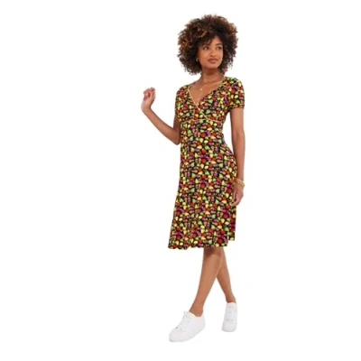 Pop with color and confidence in this short-sleeve jersey dress, designed for both comfort and style. Soft, breathable fabric and a flattering silhouette make it a go-to piece for casual days or dressier events. Easy to pair with pumps, sandals, or a jacket, it’s a versatile addition to any summer wardrobe. Soft, breathable jersey dress , Short sleeves , Fun fruity print., Approximate Length: 100cm