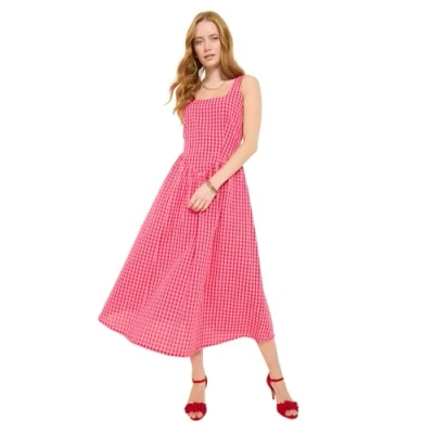 Joe Browns Women's Gingham Seersucker Cotton Dress, Regular, Red, UK 12
