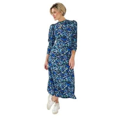 Joe Browns Women's High Neck Vintage Frill Floral Jersey Midi Dress, Blue, 16