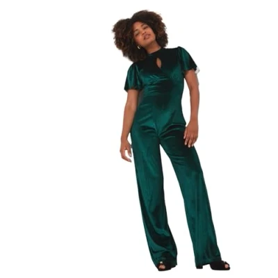 Joe Browns Women's Kimono Sleeve Keyhole Detail Wide Leg Velvet Jumpsuit, Green, 12