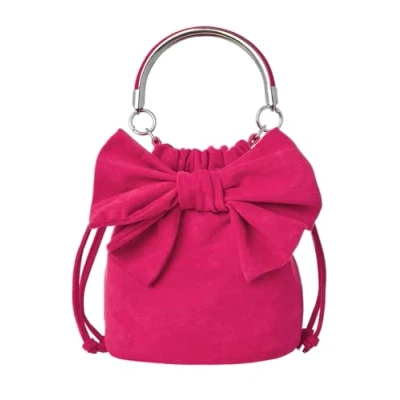 Microsuede bag Simple magnetic closure Small handle and chain crossbody strap Hot pink colour with a beautiful bow Matching heels available