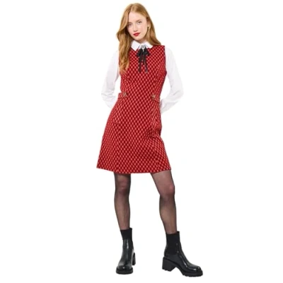 Joe Browns Women's Heart Print Tartan Check Pinafore Mini Dress, Red, 8