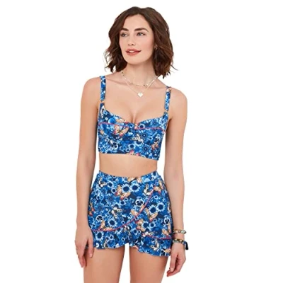 Joe Browns Women's Mix and Match Retro Longline Cupped Bikini Top, Aqua Multi, 8