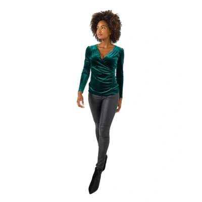 Regular-fit top in supersoft velour fabric Mock wrap design Long set-in sleeves Pretty covered buttons Gathering at the shoulder, ruching at the side seam