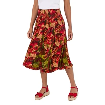 Joe Browns Women's Palm Print Godet Panel Knee Length Skater Skirt, Red, UK 16