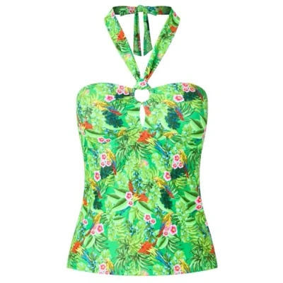 Joe Browns Women's Recycled Content Tropical Print Halter Tankini Top, Green Multi, 14