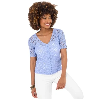 Joe Browns Women's Relaxed Crochet Cardigan Sweater, Blue, L