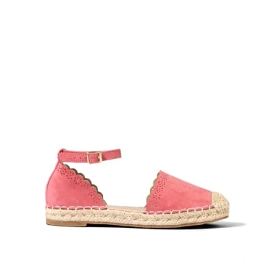 These microsuede espadrilles bring all the summery vibes with their bold colour and scalloped edges. Comfy and stylish, they’re perfect for beach walks, park picnics, or casual get-togethers. Pair them with shorts and a floaty top for a relaxed, vibrant look. Coral microsuede espadrilles , Braided toe , Comfortable sole , Ankle strap with gold buckle for fastening , Pretty scalloped edges , Trimmed with laser cut flowers , Heel Height: 2.2cm