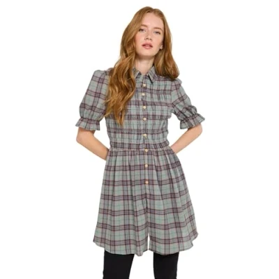 Joe Browns Women's Shirred Check Tunic Shirt, Green, 16