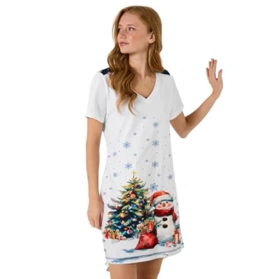 Soft jersey nightie with a high-low hem Cosy ribbed V neckline Short set-in sleeves Snowflake and snowman graphic Contrast snowflake design on the shoulders