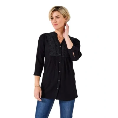Joe Browns Women's Soft Crinkle Longline Lace Blouse, Black, 6