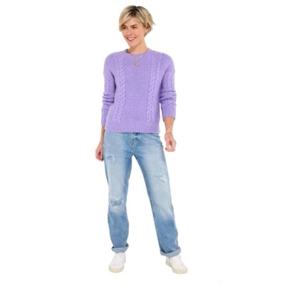 Soft knitted jumper Classic crew neckline Long sleeves with drop shoulders Beautiful lilac colour Cable-knit detail
