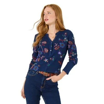 Joe Browns Women's Stretchy Embroidered Jersey Top Blouse, Blue, 10
