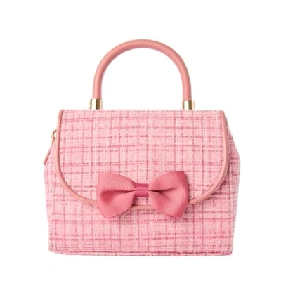 Pink tweed crossbody bag Pink PU strap and handle Pretty bow detail Matching shoes available Shoulder panel detail and contrasting bound trim